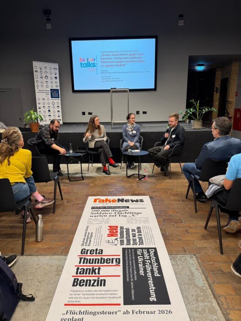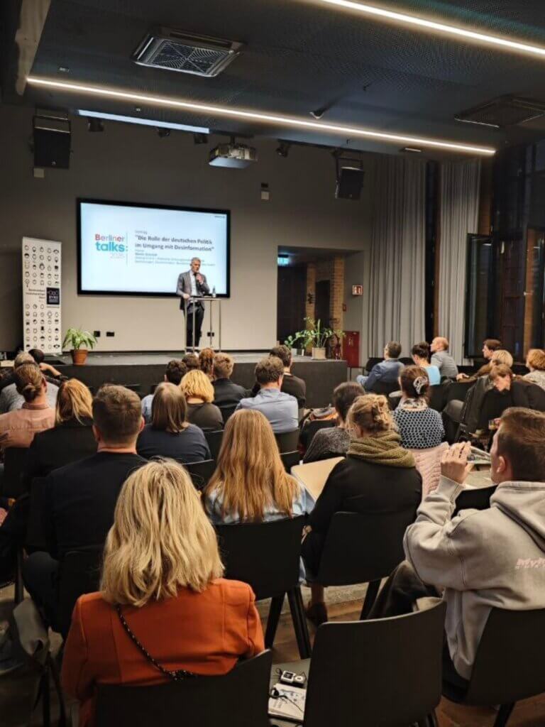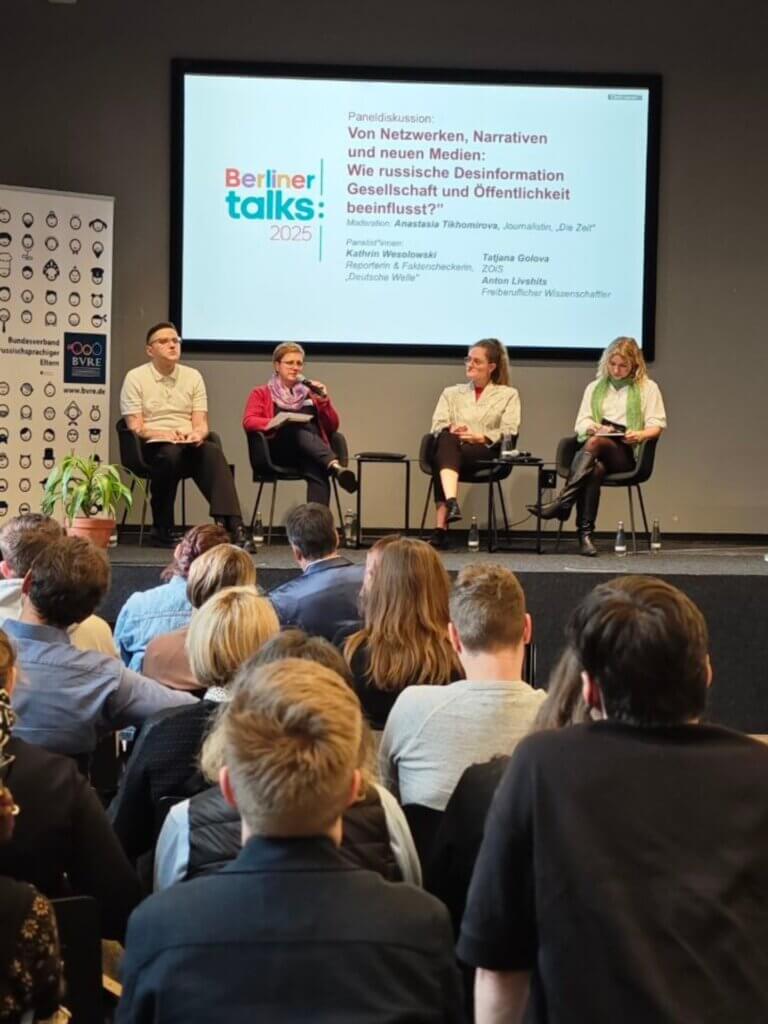 15 октября 2025 года в Берлине состоялась профессиональная конференция Berliner Talks 2025 «Демократия под давлением: Стратегии против российской дезинформации в Германии». В мероприятии приняли участие около 80 экспертов из научной среды, политики и гражданского общества. Вместе они обсуждали стратегии противодействия российской дезинформации, которая целенаправленно подрывает демократические дебаты и углубляет раскол в обществе. В обсуждении этой важной темы активно участвовала управляющая директор клуба «Диалог» Наталья Рёслер.