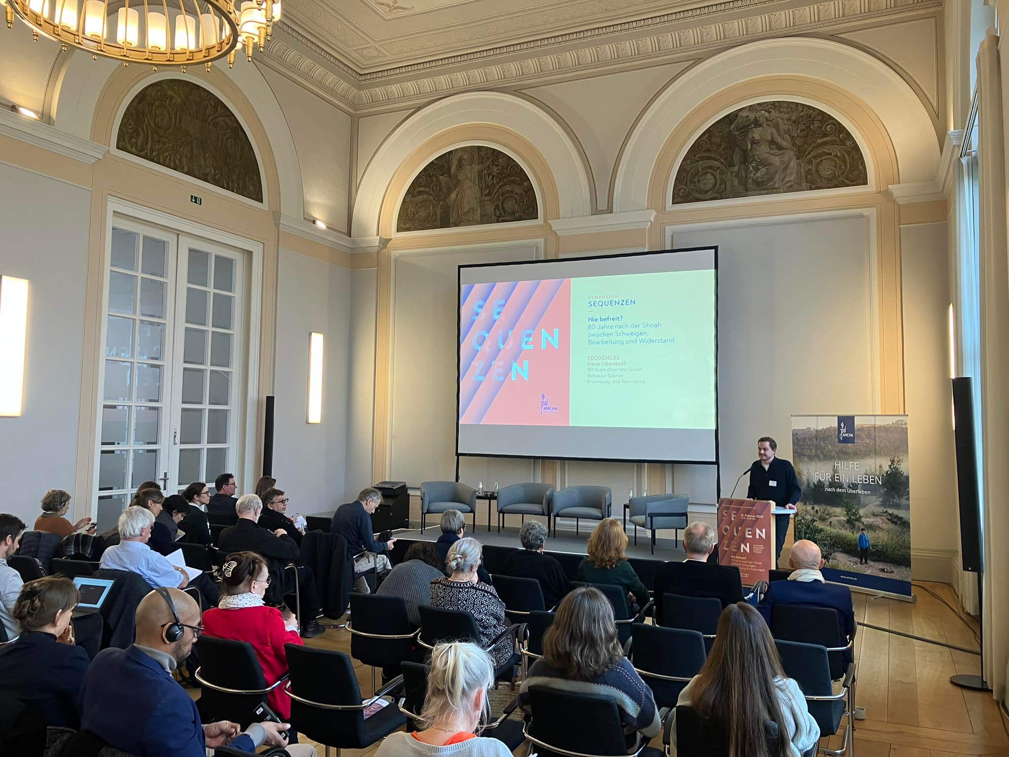 Am 12. Februar 2026 lud AMCHA Deutschland nach Berlin ein zu einem Symposium unter dem Titel „Sequenzen – Nie befreit? 80 Jahre nach der Shoah zwischen Schweigen, Bearbeitung und Widerstand“. In Vertretung des Club Dialog e.V. nahm Borys Shavlov als Gast an der Veranstaltung teil.
